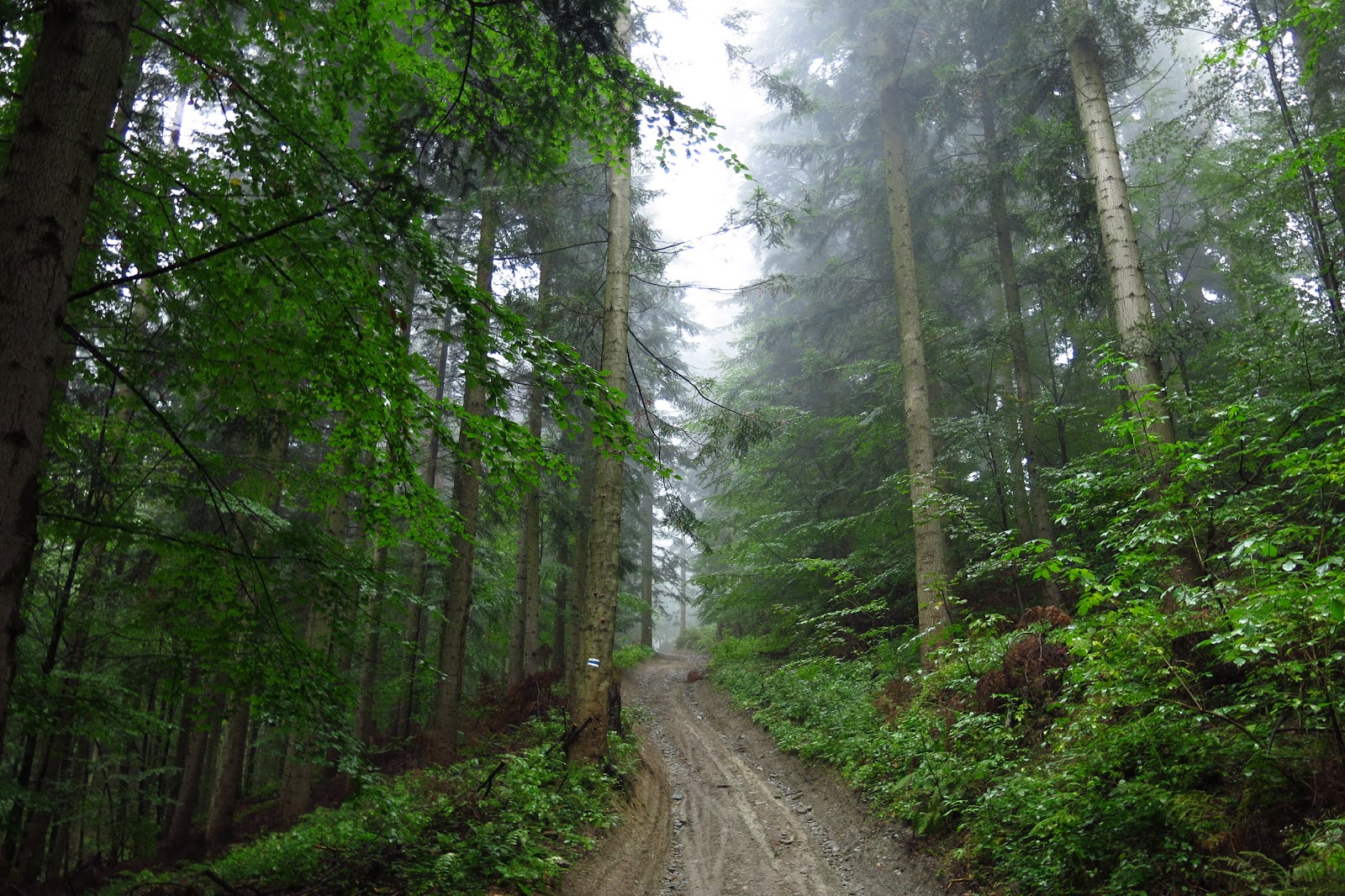 Było coraz bardziej mgliście. Pamiętam, że pierwszego dnia trasy jeździłam wokół Jeziora Rożnowskiego i na chwilę zjechałam na pobocze. Poszłam dróżką w dół i znalazłam się właśnie w takim mglistym lesie, pięknym, ale trochę strasznym. I ja mam chodzić po czymś takim?! Tak sobie wtedy pomyślałam, a tutaj faktycznie zrobiła się taka sytuacja. Ale warto się przełamać. W sumie idę szlakiem i nie ma się czego bać, a niedźwiedzie, które w Beskidzie Sądeckim niestety również są, hmmm... Wróciłam do zwyczajów z Beskidu Niskiego i wykonałam piosenkę "Rudy Rydz", żeby prewencyjnie robić hałas.