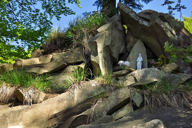 Na początku miałam iść niebieskim szlakiem, ale postanowiłam jednak zejść do Rabki żółtym, skuszona skałkami zaznaczonymi na mapie. Nie pamiętałam już opisu tego miejsca z przewodnika wydawnictwa Rewasz, czytałam to w kwietniu i wyleciało mi z głowy. Miałam więc niespodziankę.